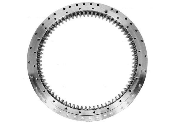 單排四點(diǎn)接觸球式回轉(zhuǎn)支承由兩個(gè)座圈組成,結(jié)構(gòu)緊湊,重量輕,鋼球與圓弧滾道四點(diǎn)接觸,能同時(shí)承受軸向力,徑向力和傾翻力矩,回轉(zhuǎn)式輸送機(jī),焊接操作機(jī),中小型起重機(jī)和挖掘機(jī)等工程機(jī)械均可選用。